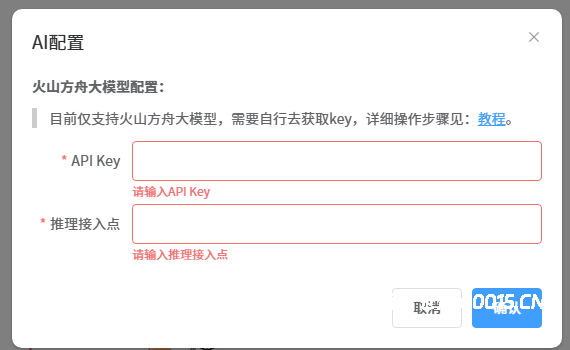 在点击修改AI配置,打开如下图,填入申请的key即可